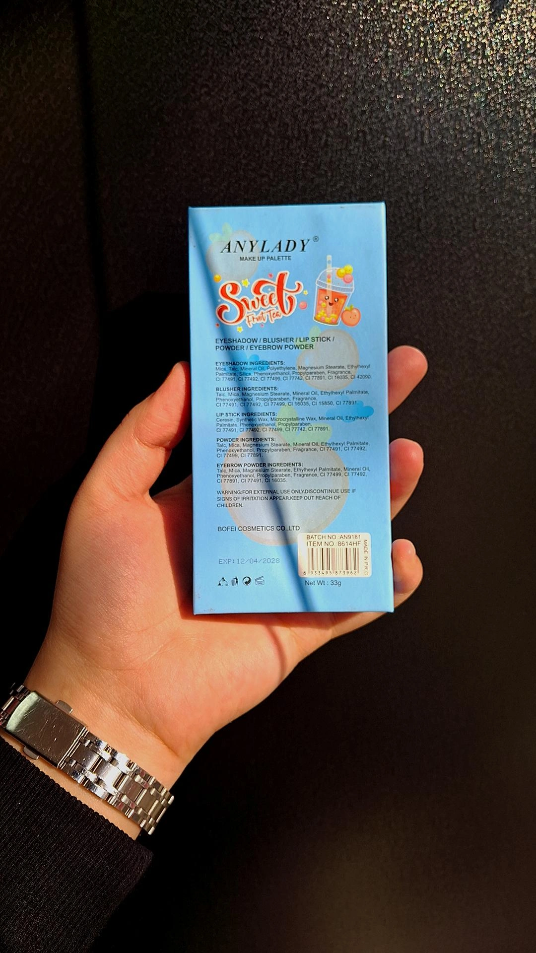پالت سایه با تنوع رنگ فوق العاده زیاد و محتویات سایه ابرو و رژ لبا هایلایتر اینه گلایتر پیگمنت فوقالعاده بالایی داری با ماندگاری زباد انی لیدی