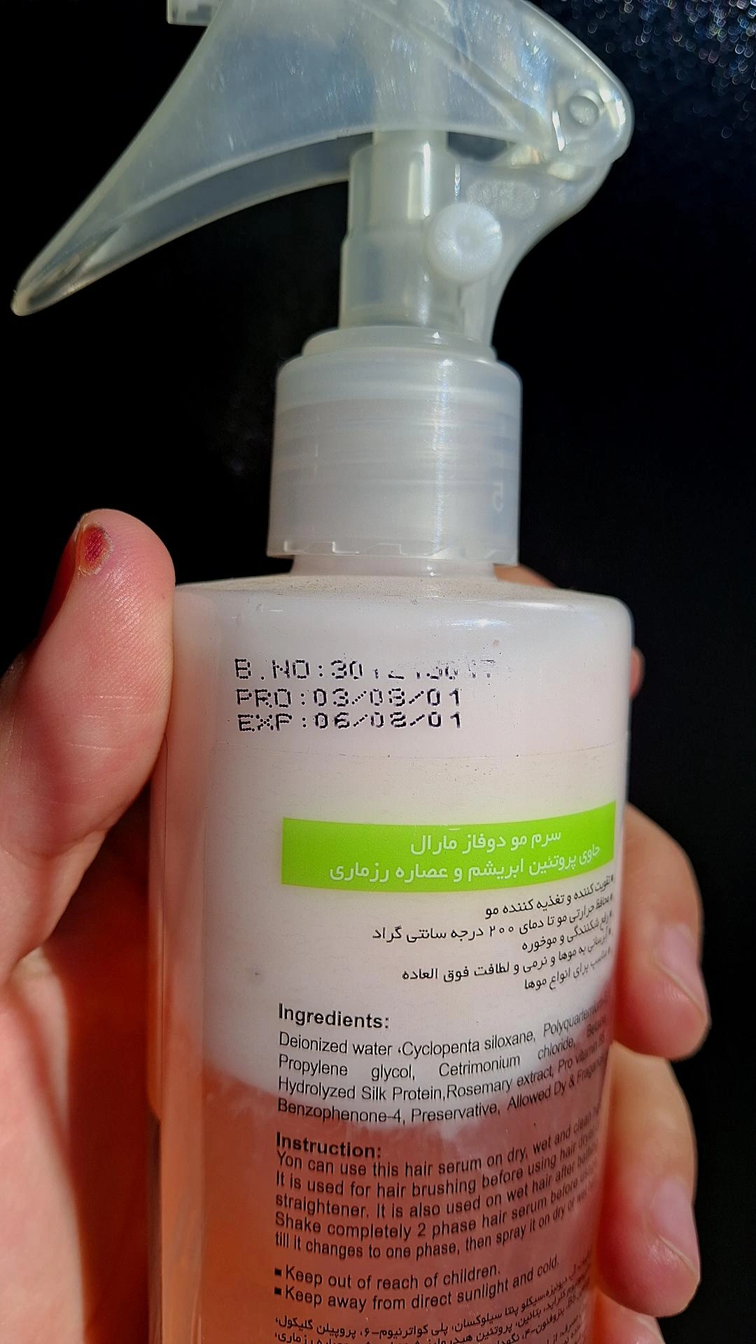 این رو بعد حموم روی موهاتون اسپری میکنن البته نکته قبل استفاده تکان بدین تا محلول داخلش قاطی بشه اسپری کنین باعث میشه ک موهاتون در برابر حرارت سشوار اسیب نبینه