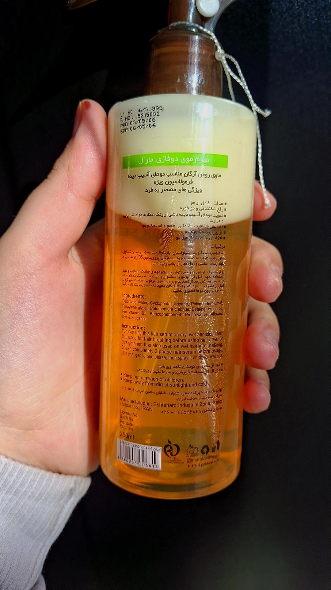 سرم مو دوفاز ۲۵۰ میلی حاوی حاوی روغن ارگان مناسب موهای اسیب دیده